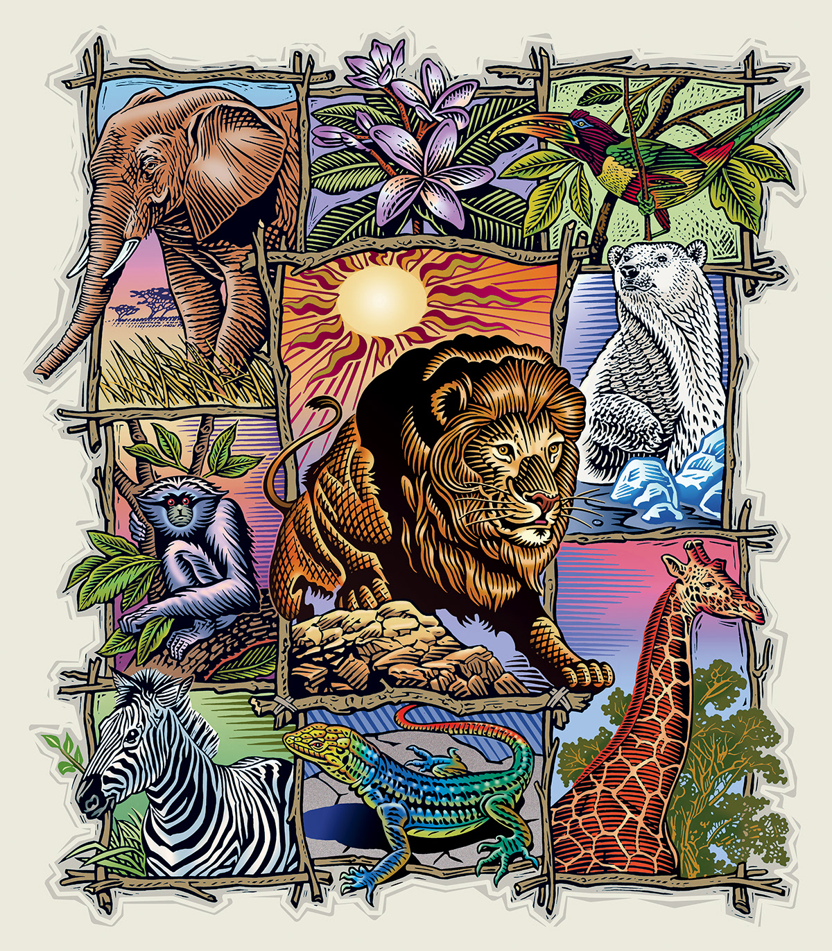 HomeStreet Bank partners with regional zoos to support their work in education and conservation through an annual program that contributes $10 for every new bank account, mortgage, loan or insurance policy. This illustration was commissioned for advertising on billboards, posters, T-shirts, bookmarks and banners.